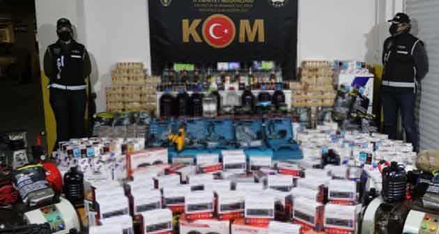 Gerçekleştirilen aramalarda, 790 bin 400 dal sahte bandrollü makaron, 107 bin 20 dal sarılmış sigara, bin 600 adet gümrük kaçağı güneş gözlüğü, bin 440 adet cinsel içerikli ürün, bin 306 adet gümrük kaçağı benzinli çakmak, 160 paket gümrük kaçağı sigara, 155 litre etil alkol, 104 kilogram kıyılmış tütün, 83 adet bıçak, 81 litre sahte içki, 70 adet çakmak benzini, 70 adet alkol yapımında kullanılan aroma kiti ve 4 adet kompresör ele geçirildi. Gözaltına alınan ve emniyetteki işlemlerinin ardından adliyeye sevk edilen 12 şüpheli, adli kontrol şartıyla serbest bırakıldı.