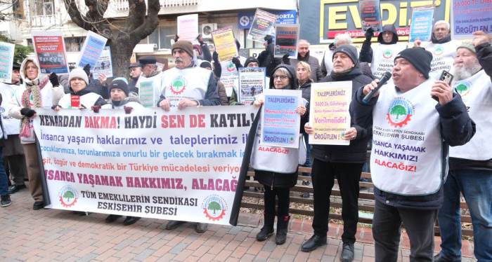 Tüm Emeklilerin Sendikası Eskişehir Şubesi, emeklilerin derinleşen ekonomik ve sosyal sorunlarına dikkat çekmek ve Cumhuriyet Halk Partili milletvekillerinin Türkiye Büyük Millet Meclisi’nde başlattığı “emekli nöbeti”ne destek vermek amacıyla Hamamyolu’nda yeniden bir araya geldi. “Emekliler üretti, saray tüketti” ve “Sefalete teslim olmayacağız” sloganları eşliğinde yapılan açıklamada, emeklilerin yaşadığı geçim sıkıntısı ve maaş politikalarına sert tepki gösterildi. Basın açıklamasında konuşan Tüm Emeklilerin Sendikası Şube Denetleme Kurulu Üyesi Vurhan Aydur, iktidarın emekli maaşlarını 20 bin liraya çıkarmasını “müjde” olarak sunmasına tepki gösterdi. Aydur, “Biz biliyoruz; bu bir müjde değil. Bu, emekliler için yoksulluğu kalıcı hale getiren yeni bir operasyondur. Bugün emekliye reva görülen şey, insanca yaşam değil, yoksulluk ve sefalettir. Emekliye dayatılan hak değil, sadaka düzenidir” ifadelerini kullandı.