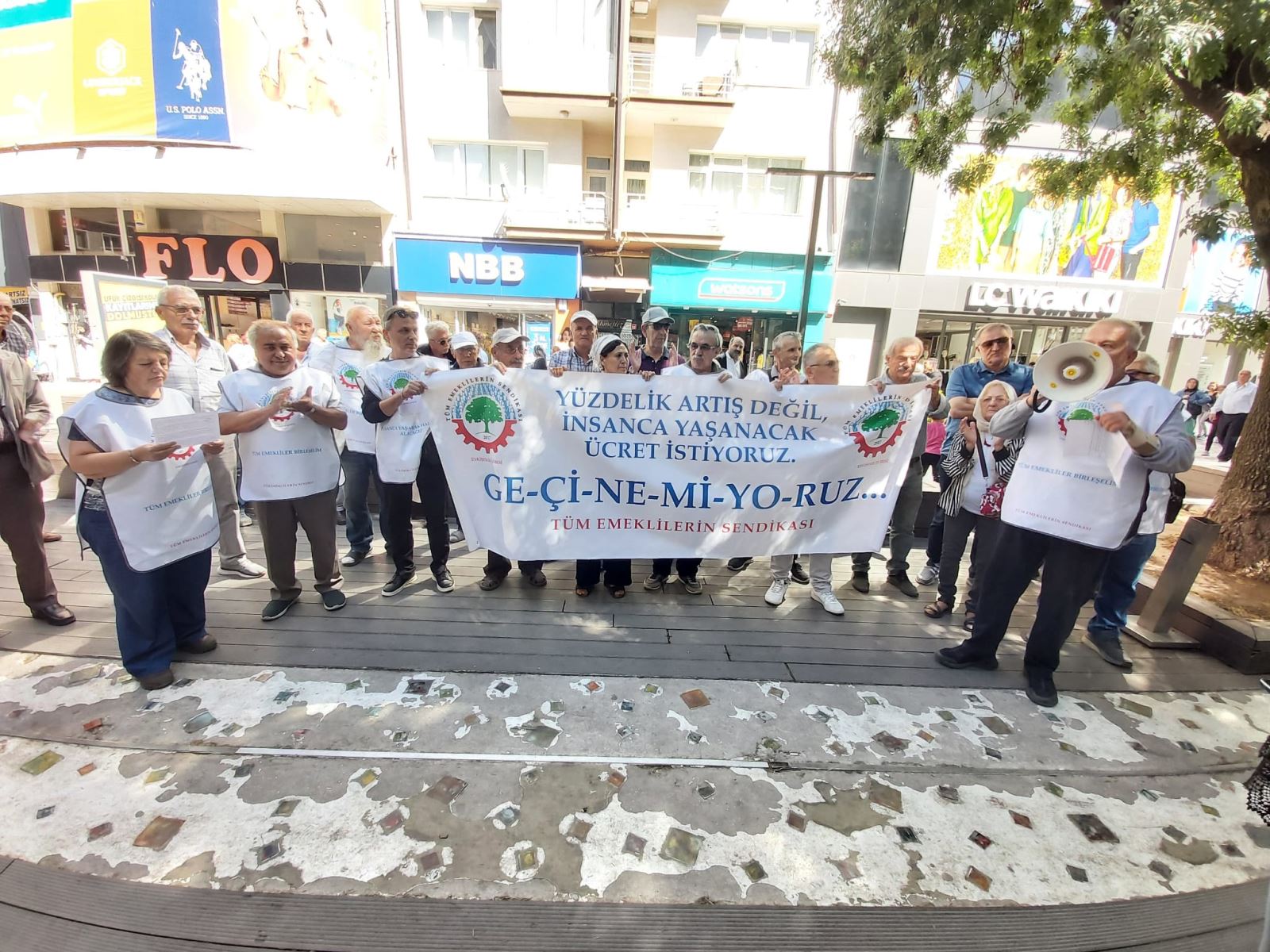 Emekliler adına açıklama yapan Şube Başkanı Nalan Karagöz, “2023 yılının ilk 6 ayında maaşlarımız ortalama yüzde 52 eridi. 1 Temmuz'dan itibaren gelen zamlar alım gücümüzü çok düşürdüğü apaçık ortadayken, emeklilerin çok az bir kısmına yansıyacak olan yüzde 25 artış kabul edilebilir değildir.Hali hazırda, kesin sayısı açıklanmamakla birlikte, sayısı 9 milyon tahmin edilen emeklinin 7 bin 500 lira civarında maaş aldığı ve emeklilerin çok önemli bir bölümünün kök maaşları da 7 bin 500 liranın çok altında kaldı. Zam furyası sürekli olarak ortalığı kasıp kavurmaya devam ediyor. Cumhuriyet bayramı ikramiyesi verileceği söylemi ile bizleri birkere daha kandırmak istiyorlar. Sabrımız tükendi! Artık yeter! Bıçak kemiği de geçti” dedi.