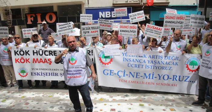 Eskişehir'de Hamamyolu Caddesi’nde pankart ve dövizlerle bir araya gelen emekliler, açıklanın verilerin gerçeği yansıtmadığını belirterek, “TÜİK elini cebimizden çek”, “Sefalete teslim olmayacağız” sloganları attı. Şube Başkanı Ali Paşa Şanlı yaptığı açıklamada Yüzdelik artış değil, hakkımız olan insanca yaşanacak aylık maaş talep ettiklerini belirterek, “Memur emeklilerinin maaşlarında; açıklamalara bakılırsa yüzde 20 dolayındaki artış, kayıpların telafisini karşılamaktan çok uzaktır. Emekliye 10 bin lira maaşı reva gören Sosyal Güvenlik Bakanı Vedat Işıkhan'ın sadece yüzde 20’lik maaş artışı 29 bin lira. Emeklilerin ve asgari ücretlilerin maaşları çok yüksek diyen Maliye Bakanı Mehmet Şimşek'in sadece yüzde 20’lik maaş artışı 49 bin lira olacak. El insaf! El merhamet!Özetle,iktidarın bizler için, maaş artışı dediği şey, zam veya maaş artışı değil, açlık ve sefalettir” dedi. Emeklilerin, asgari ücretliyi aç bırakarak tasarruf yapılamayacağını söyleyen Şanlı, “Bizler bırakın tasarruf yapmayı, açlıktan ölmemek için direniyoruz. Kısa vadede emeklilerin maaşlarına temmuzda kayıplarımızın telafisi ve gelecek 6 aylık hissedilen enflasyon oranı ve refah payına ilaveten 15 bin liralık seyyanen artış derhal yapılmalıdır. Uzun vadede ise 2008'de uygulamaya sokulan SGK Reformu kaldırılmalı, maaş güncelleme katsayısı ve maaş bağlama oranı yeniden düzenlenmelidir. Bu düzenlemede en düşük emekli maaşı, en düşük memur maaşına eşitlenerek yapılandırılmalı ve ardından yoksulluk sınırının üzerine çıkarılması için yasal düzenleme yapılmalıdır” ifadelerini kullandı.