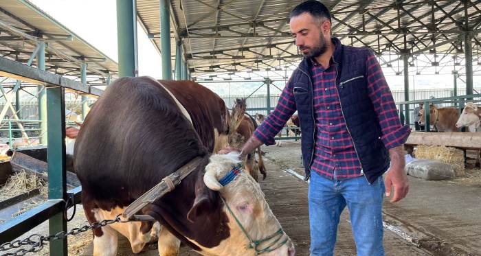 Şahin Murat, 160 bin lira paha biçtiği danası Paşa’ya henüz ciddi bir teklif gelmediğine değindi. Boğasına 3 sene boyunca bebeği gibi bakıp, yetiştirdiğine değinen Murat, “Her sene böyle kurban pazarlarına çıkıyoruz. 8 hayvan getirdik buraya, yerimiz burada olduğu için günlük getiriyor. Bu da Paşa isimli boğazımız son güne bıraktık. Şu an pazarın en büyüğü, tabii sonradan gelirse daha büyük bilmiyoruz. Şu an için en büyüğü, gerçekten nazar değmesin maşallah. Özene bezene yetiştirdik, çok zahmet çektik yetiştirmek için. Kendisi 3 yaşında vallahi 3 senedir el bebek gül bebek yetiştiriyoruz. Şükür bugüne getirdik, nasip olursa satılacak, satılmazsa da bıçağa gidecek. Fiyat soran illaki oluyor meraklısı çok ama istediğimiz paraları vermiyorlar. Paşa’ya 160 bin TL istiyoruz, nasip olursa bir pazarlığımız var. Yani ufak demeyelim, nasip kaçta biter bilmiyorum. İnşallah bulur, müşterisine gider. Güzel bir kurbanlık inşallah yerini bulur, görevini tamamlar. Gözümden ayırt edemiyorsun ki yani onun haricinde hayvanım olduğu için manevi zaten yine değer veriyorum. Ama özenle yetiştirdiğimiz bir hayvanımız. Diğer büyük danalarımıza 125 bin TL civarı diyoruz tabi o bunun kadar büyük değiller. Bu danamız daha büyük. Onlar da aşağı yukarı 200-250 kilo geliyor. Dediğim gibi talep çok ama şimdilik alıcısı yok illa umudumuz var” dedi.