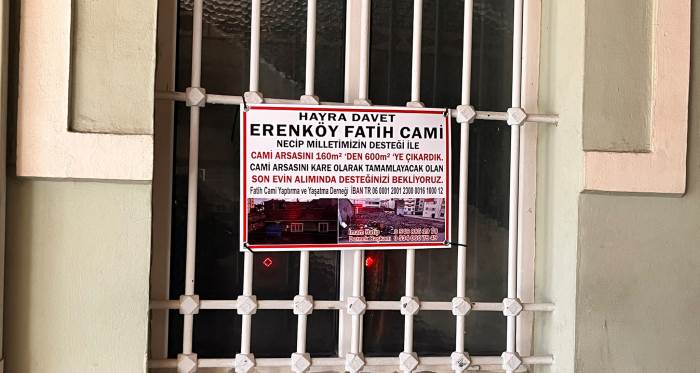 Caminin arsasını genişletme çalışmalarını sürdüren Fatih Camii Yaptırma ve Yaşatma Derneği, vatandaşların katkılarıyla 160 metrekarelik alanı 600 metrekareye çıkardıklarını açıkladı. Dernek, cami arsasını tamamlamak için kalan son evin alımı için destek beklediklerini duyurdu. Duyuruda, “Necip milletimizin desteğiyle cami arsasını büyüttük, şimdi son evin alımında yardımınıza ihtiyacımız var” ifadelerine yer verildi. Bağışta bulunmak isteyen vatandaşlar için derneğin iletişim numaraları ve IBAN bilgileri de paylaşıldı. Erenköy Fatih Camii’nin tamamlanmasıyla birlikte, bölge sakinlerinin uzun süredir beklediği yeni ibadet alanının hizmete açılması planlanıyor.