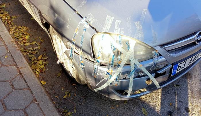 Eskişehir’de bir aracın ön tarafında meydana gelen hasarın bantla tamir edilmesi, vatandaşların dikkatini çekti. Şehrin işlek noktalarından birinde park halinde görülen aracın ön tamponundaki kırık bölgelerin çeşitli bantlarla kapatıldığı fark edildi. Bu alışılmadık görüntü, özellikle yoldan geçenlerin ilgisini çekti ve bazı vatandaşların aracın önünde durup inceleme yapmasına neden oldu.