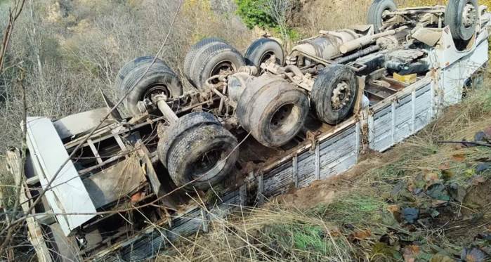 Şelale yönünden ilçe merkezine gitmek üzere yola çıkan H.Y. yönetimindeki kamyon, sürücünün bir anlık direksiyon hakimiyetini kaybetmesi sonucu yoldan çıkarak şarampole yuvarlandı.