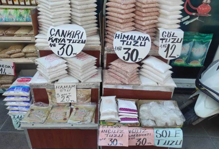 Epsom tuzu ise ağrıları hafifletirken kas gerginliğine iyi geldiği söyleniyor. Dükkan sahibi, tuzlara ilginin yüksek olduğunu dile getirirken hem yemeklerde hem de farklı alanlarda kullanıldığını dile getiriyor.