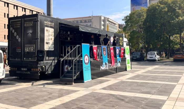Eskişehir Valilik Meydanı’na konumlandırılan Narko Tır, vatandaşların ilgisini çekti. Özellikle gençlerin uyuşturucu ile mücadele konusunda bilinçlenmesini hedefleyen tırda, Emniyet Genel Müdürlüğü ekipleri bilgilendirme çalışmaları yapıyor. Tırın içinde uyuşturucunun insan vücuduna ve topluma verdiği zararlar, görsel ve teknolojik anlatımlarla ziyaretçilere sunuluyor. Gençler, sanal gerçeklik uygulamaları ve bilgilendirici içerikler sayesinde madde bağımlılığının tehlikelerini yakından deneyimleme fırsatı buluyor. Yetkililer, Narko Tır’ın bir süre Valilik Meydanı’nda kalacağını, isteyen herkesin ücretsiz şekilde ziyaret edebileceğini belirtiyor. Projenin amacı, gençleri bilinçlendirmenin yanı sıra aileleri de bu konuda bilgilendirmek.