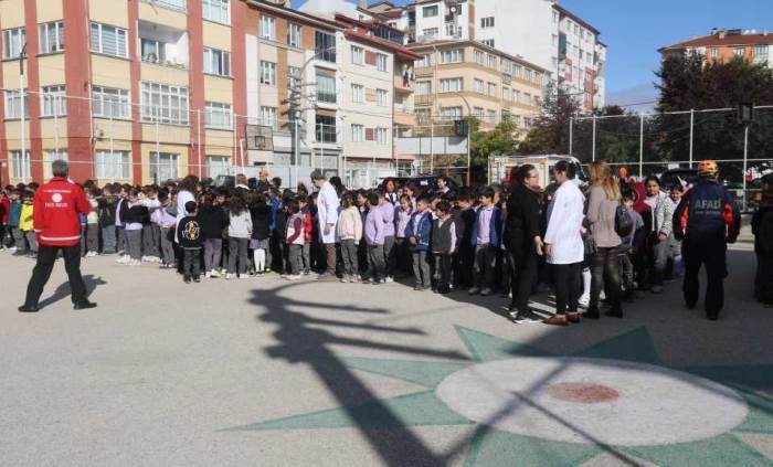 Eskişehir'de Afet ve Acil Durum İl Müdürlüğü (AFAD) tarafından ilkokul öğrencileriyle, gerçeği aratmayan bir şekilde deprem tatbikatı ve afet eğitimi gerçekleştirildi.