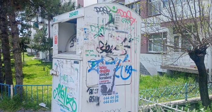 Eskişehir’de bazı giysi kumbaralarının dış yüzeylerinde oluşan yazı, boya ve deformasyon dikkat çekti. Bilgilendirme yazılarının okunamaz hale geldiği görüldü.