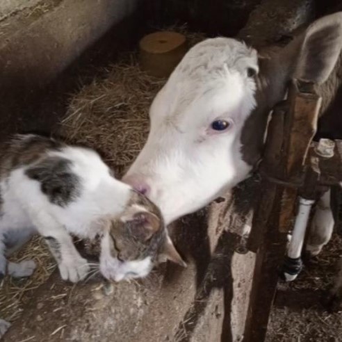 Daha sonra Haydar, Garip isimli buzağıyı yalıyor. Bu durumdan mutlu olduğu görülen kedi, dakikalarca buzağının yanından ayrılmıyor. Günün belli saatlerinde bağlı olan Haydar’ı ahırda düzenli olarak ziyaret eden Garip, dışarıya salındığı zamanda ise birlikte oynuyorlar. Buzağı ve kedinin sevimli dostluğu izleyenleri gülümsetti.