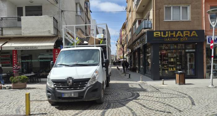 Eskişehir Odunpazarı İstiklal Mahallesi Demirciler Sokak’ta hatalı park edilen bir kamyonet, yolun büyük bölümünü kapattı. Dar yapısı nedeniyle zaten zor ilerleyen sokakta, araç geçişi neredeyse imkânsız hale geldi.