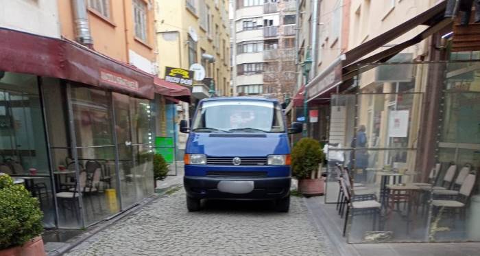 Eskişehir’in en işlek bölgelerinden biri olan Hamamyolu’nda bir aracın sokak üzerine park edilmesi, yaya geçişinde ciddi sıkıntıya yol açtı. Gün içerisinde yoğun yaya trafiğinin yaşandığı sokakta, yolun büyük bölümünü kaplayacak şekilde park edilen araç dikkat çekti. Taş döşemeli sokakta park edilen aracın iki yanında bulunan işletmelere ait masa ve cam bölmeleri, yaya kullanım alanını daha da daralttı. Bu durum, sokaktan geçen vatandaşların dar bir koridordan ilerlemek zorunda kalmasına neden oldu.