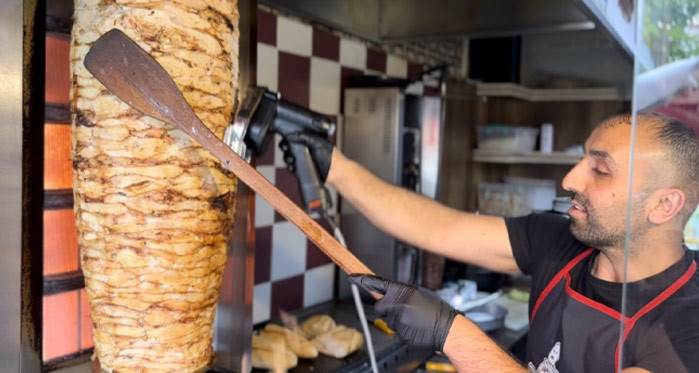 Ateş başında çalışmanın hava sıcaklığını iki kat fazla hissettirdiğini belirten döner ustası Tanju Pekdemir, “Biz döner başında olduğumuz için hem yazın hem de kışın 40 dereceyi yaşıyoruz. Birde hava sıcaklığı 40 derece olunca burada 80 derece olarak yaşıyoruz. Özellikle su kaybımız çok fazla oluyor ve sürekli ayakta durduğumuz için zorlanıyoruz. Yani sıcak havalarda işimizin zorluğu 2 kat artıyor. Yakın zamanda beklenen sıcaklık artışları da var, çalışan kardeşimiz şimdiden bunun paniğini yaşıyor ama ekmek parası için zorundayız. Eğer müşteri yoğunluğu yoksa serinlemek için ara sıra dışarı çıkıyoruz ama yoğunluk varsa onu da yapamıyoruz. En fazla su içebiliyoruz, vantilatörü kullanıyoruz ama onun da bize çok faydası olmuyor. Dünyadayken cezamızı çekiyoruz diyebilirim. Dükkân dolu olduğu zaman sıcaklık artışı daha fazla oluyor, camları açarak havalandırmayı sağlamaya çalışıyoruz. Tüm camları açınca bir nebze ferahlıyoruz ama bu şekilde de cereyanda kalıp, rahatsızlanıyoruz ve sağlık yönünden sıkıntı çekiyoruz. Bazen müşterilere asık suratlı gibi duruyoruz ama yorgunluğun vermiş olduğu bir davranış, yani bilerek yapmıyoruz. Yanlış yaklaşımda bulunmak olmaz tabi ama belki yorgunluktan dolayı bir isteksizlik görürlerse bizi yanlış anlamasınlar” dedi.