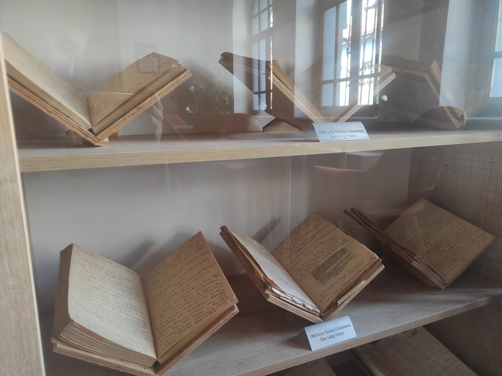 Kendisine gelen ve kendisinin gönderdiği mektuplar ise ayrı bir köşede duruyor. En önemli mektup ise 1972 yılındaki cezaevinden çocuklarına gönderdiği mektubu… Mektupların üst kısmında da Avcıoğlu’nun fotoğrafları var. Küçüklük fotoğrafı, ailesiyle fotoğrafı ve eşiyle olan fotoğrafı yer alıyor. Kütüphane giriş kısmı hariç 3 odadan oluşuyor. İlk odada büyük bir vitrinde Avcıoğlu’nun okuduğu bin 500 kitap sergileniyor. Diğer vitrinde ise yazdığı kitapların basılmamış yani not halleri yer alıyor. Aynı zamanda Avcıoğlu’nun Türkiye’nin durumu ile ilgili gözlemlediği ve düşündüğü detayları yazdığı notlar da bu kütüphanede!