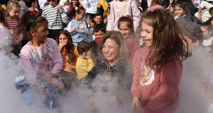 Başkan Ayşe Ünlüce, çocuklarla bir araya gelerek, “Amacımız bilimi sadece kitaplardan değil, deneyimleyerek öğrenmek. Şenliğimizle gençlerimizin merak duygusunu güçlendiriyor, geleceğe emin adımlarla ilerlemelerini sağlıyoruz” dedi.