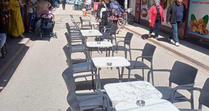 Eskişehir Vural Sokak’ta kaldırım boyunca yerleştirilen masa ve sandalyeler dikkat çekti. Yaya yolunun işletme alanına dönüşmesi, geçiş hattının daralmasına neden oldu.