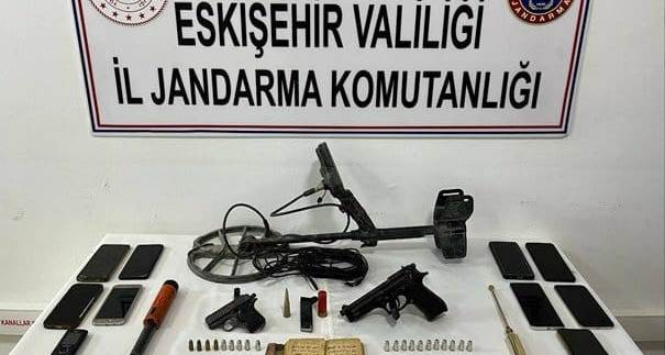 Eskişehir’de jandarma ekiplerince düzenlenen geniş çaplı operasyonda, tarihi eser niteliği taşıyan el yazması bir Kur’an-ı Kerim ile 9 bronz sikke ve obje ele geçirildi. Eskişehir İl Jandarma Komutanlığı'nın “Anadolu Mirası” operasyonu kapsamında, define bulmak amacıyla izinsiz kazı yapıldığı tespit edilen 10 şüphelinin ikametlerine eş zamanlı baskın yapıldı. Aramalarda, bir adet tarihi eser niteliğinde el yazması Kur’an-ı Kerim, 9 bronz sikke ve obje, bir ruhsatsız tabanca, bir kurusıkı tabanca, 22 tabanca fişeği, 1 yılan kamera, 2 metal arama dedektörü ve 11 cep telefonu ele geçirildi. Olayla ilgili 10 şüpheli hakkında çeşitli suçlardan soruşturma başlatıldı.
