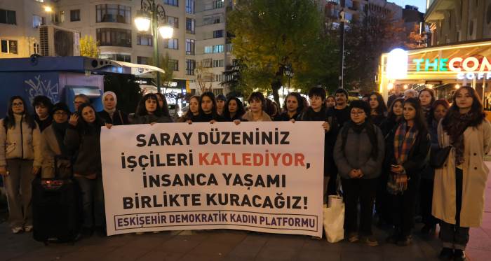 Eskişehir Demokratik Kadın Platformu, İsmet İnönü Caddesi’nde Kocaeli’de bir binada çıkan yangında 6 işçinin hayatını kaybetmesi nedeniyle “İş Kazası Değil Bu Cinayet! Sorumlular Hesap Versin!” başlıklı bir açıklama gerçekleştirdi. “Kadın cinayetleri politiktir”, “İşçilerin katili saray düzeni”, sloganları eşliğinde Platform adına konuşan Emek Partisi İl Başkanı Ceren Kökoğlu, ülkedeki işçilerin emeğinin ve yaşamının hiçbir güvencesi kalmadığını söyledi. Eskişehir Demokratik Kadın Platformu adına konuşan Emek Partisi İl Başkanı Kökoğlu, yaşanan kayıpların işçinin yalnızca emeğinin değil, aynı zamanda canının da hiçbir güvencesi olmadığını gösterdiğini vurguladı. Kökoğlu, “Patlamanın ardından ortaya çıkan bilgiler, bu iş cinayetinin ihmaller zinciri, denetimsizlik ve göz yumma politikalarıyla nasıl göz göre göre yaşandığını tüm açıklığıyla ortaya koyuyor. İşçilerin canı pahasına üretim sürdürülüyor, patronlar ise işçilerin hayatından çalarak servetlerine servet katıyor. Yaşamını yitiren 6 kadın işçiden 3’ü çocuktu. Hepsi yevmiyeli, sigortasız ve güvencesiz çalıştırılan emekçilerdi. İşletmenin yangın söndürme planı yoktu, çalışma ruhsatı bile bulunmuyordu. İşçilerin patlamadan kaçma şansı dahi olmadı. Bu, açıkça bir cinayettir! Sorumlusu başta işletme sahibi ve yöneticileri olmak üzere; bu işletmeyi denetlemeyen Çalışma ve Sosyal Güvenlik Bakanlığı, SGK ve İlçe Belediyesidir. Bu bir kader değildir, fıtrat hiç değildir; bu bir iş cinayetidir” diye konuştu.
