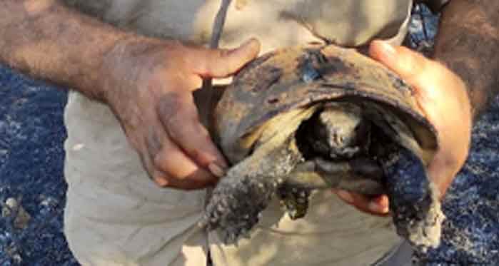 Eskişehir'de tarladan ormana sıçrayan yangında hayvanlar da zarar gördü.  Sol ön ayağı yanmış bir kaplumbağanın fotoğrafı görenleri üzdü.