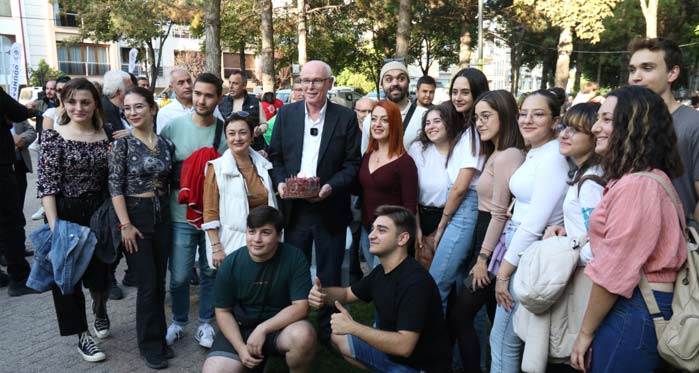 Eskişehir Odunpazarı Belediye Başkanı Kazım Kurt, Kanlıkavak Parkı’nda gençlerle bir araya gelerek kahve içti