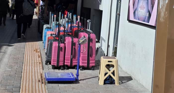 Eskişehir’de Hamamyolu Caddesi’nde bir işletmenin kaldırımı bavullarla işgal etmesi, yaya geçişini zorlaştırdı. Yoğunluk nedeniyle vatandaşlar yürümekte güçlük çekerken, denetim çağrısı yapıldı.
