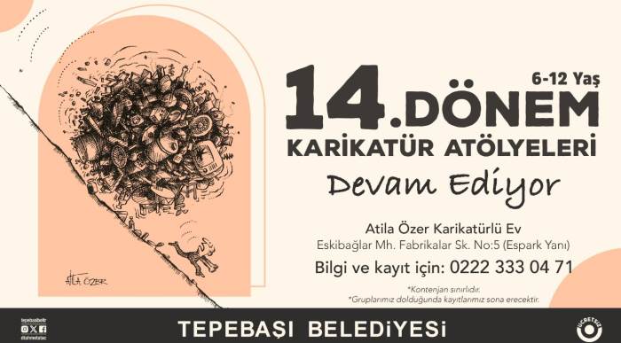 Tepebaşı Belediyesi Atila Özer Karikatürlü Ev’de düzenlenen 14. Dönem Karikatür Atölye çalışması için kayıtlar devam ediyor. Çocukların hayal gücünü geliştirmek, aynı zamanda olaylara farklı açılardan bakabilme becerisi kazandırmak, mizah yoluyla kendini ifade etmeyi öğretmek, duygu ve düşüncelerini daha özgür ve yaratıcı biçimde ortaya koyabilmek, ince motor becerilerini güçlendirmek amacıyla düzenlenen çalışmalar, dikkat ve odaklanma yeteneğine de olumlu etki ediyor. Ayrıca karikatür, çocukların eleştirel düşünme becerilerini besleyerek sosyal farkındalıklarını artırıyor ve kendilerine olan güvenlerini pekiştiriyor.