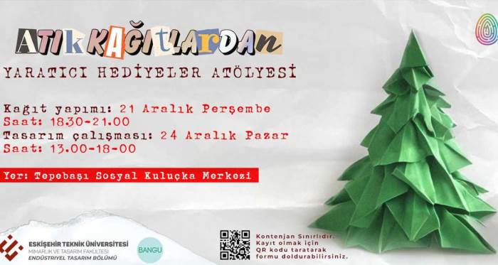 Eskişehir Tepebaşı Sosyal Kuluçka Merkezi tarafından ‘Atık Kağıtlardan Yaratıcı Hediyeler Atölyesi’ düzenlenecek.