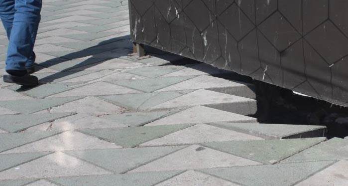 İnşaatın bulunduğu kaldırımdaki bir taşın yerinden neredeyse çıkacak olduğu görülürken, etrafındaki boşluklar da çökme tehlikesine davetiye çıkartıyor. Vatandaşların gün içinde sıklıkla kullandığı kaldırımdaki boşluk özellikle çocuklar için de risk oluşturuyor.