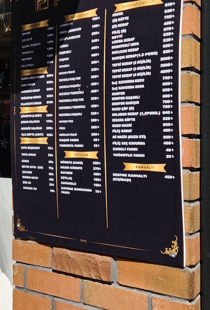 Restoran menülerinde Adana kebap ve Urfa kebap 530 TL’den satılırken, patlıcan kebap 650 TL, balaban kebap yaklaşık 640 TL seviyesine çıktı. Kuzu etinden yapılan Ali Nazik kebap ise 800 TL’ye kadar yükseldi.