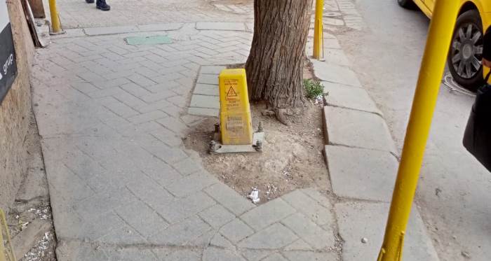 Yaya yolunda bulunan dubanın kaldırılmak yerine ağacın çevresine bırakıldığı görüldü. Bu durum, kaldırımda düzensiz bir görüntü oluşturdu.