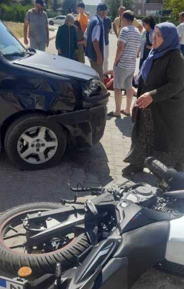 Eskişehir'de 16 yaşındaki ehliyetsiz sürücünün kullandığı motosikletin seyir halindeki otomobille çarpışması sonucunda maddi hasar meydana geldi.