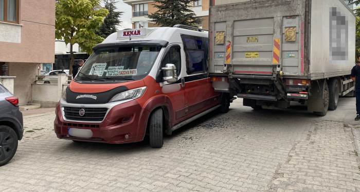 Eskişehir’in Ertuğrulgazi Mahallesi’nde dün akşam saat 17.15 sıralarında tır ile minibüsün çarpıştığı kazada maddi hasar oluştu. Atay Sokak’a dönen minibüs, Çilem Caddesi’ne çıkmaya çalışan market tırıyla çarpıştı. Kazada minibüsün camı kırılırken, her iki araçta da maddi hasar meydana geldi.