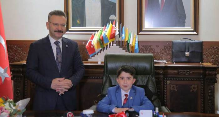 Eskişehir Valisi Hüseyin Aksoy, 23 Nisan Ulusal Egemenlik ve Çocuk Bayramı dolayısıyla makamını Adalet İlkokulu 4. sınıf öğrencisi Kerem Gürsoy’a devretti.