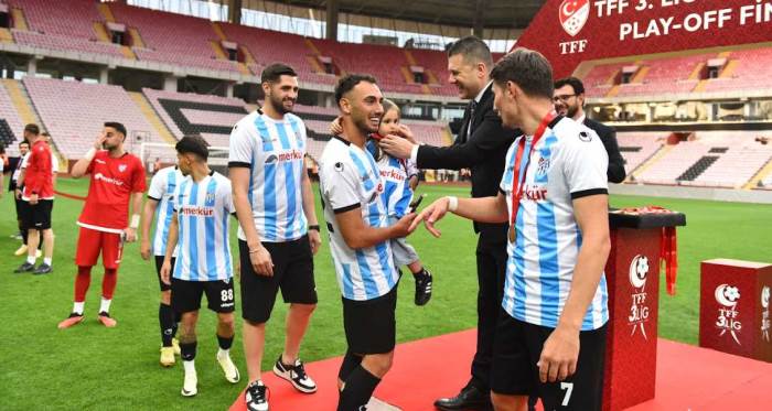 Eskişehir’de şampiyonluğa ulaşan ve 2. Lig’e yükselen Merjüt Jet Erbaaspor için maç sonunda kupa töreni düzenlendi.