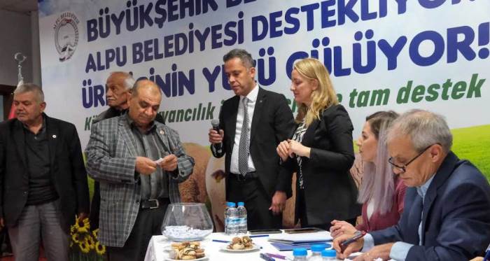 Küçükbaş Yetiştiriciliği Destekleme ve Yayma Projesi kapsamında destek başvurusunda bulunanlar için Alpu Belediyesi Kültür Evi ve Konferans Salonu’nda noter huzurunda kura çekim töreni düzenlendi.Törene Eskişehir Büyükşehir Belediyesi Genel Sekreteri Ayşe Ünlüce, Alpu Kaymakamı Metin Baskın, Alpu Belediye Başkanı Gürbüz Güller, meclis üyeleri, muhtarlar, belediye bürokratları ile çiftçiler ve hayvan yetiştiricileri katıldı.
