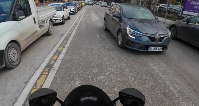 O sırada aynı şeritte ilerleyen K.E. isimli motosiklet sürücüsünün kask kamerası, sürücünün tehlikeli manevrasını kaydetti. Görüntüler, trafikteki sürücülerin dikkatsizliğinin nelere yol açabileceğini gözler önüne serdi.