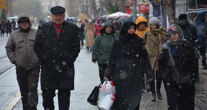 Eskişehir'de mevsimin ilk karı yağdı