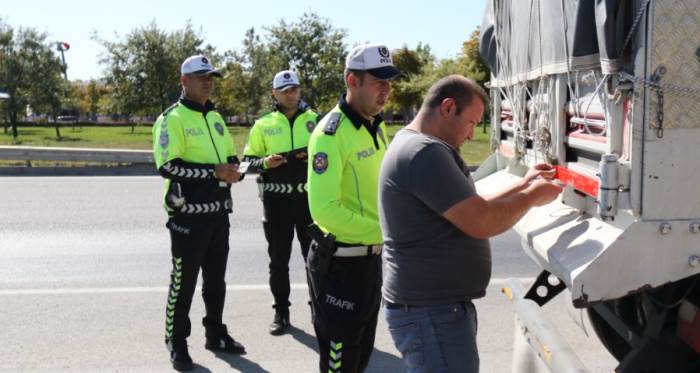 Çalışmalar hakkında bilgi veren Eskişehir Trafik Denetleme ve Bölge Trafik Denetleme Şube Müdürü Hakan Solak, “Ülkemizde tescilli araçların yaklaşık yüzde 3,5’ini çekici, kamyon ve tanker türü taşıtlar oluşturmasına rağmen bu araçlar yürütmüş oldukları faaliyete bağlı olarak trafikte ve özellikle şehirlerarası karayollarında çok daha büyük oranda yer almaktadır.Bu araçların taşıdığı yüke bağlı olarak ağırlık ve hacimlerinin büyüklüğü bir kaza anında kusurları bulunsun veya bulunmasın çarpışma şiddetinin daha büyük olmasına neden olmakta ve bu durum ne yazık ki kaçınılmaz olarak çok sayıda ağır yaralanma ve ölümle sonuçlanmaktadır.Bu nedenle yük taşıyan araçların trafikte güvenli seyretmesi ve bunu sağlamaya yönelik uygulamaya koyduğumuz tedbir ve denetimler bizler için son derece önemlidir.Karayolu ile yük taşımacılığının trafik güvenliği kavramıyla bir arada yürütülmesi için Karayolları Trafik Kanunu'nun Bakanlığımıza vermiş olduğu yetki ve sorumlulukla şehirlerarası karayolları güzergahlarında ve münhasıran oluşturulan denetim noktalarında bu araçlar kaza nedenlerinin ilk sıralarında gelen ‘aşırı hızlı araç kullanma’ ve ‘araç kullanma süresini aşma’ yönünden titizlikle incelenmektedir.Yürütülen denetimlerde; şoförlerin hız ve çalışma ve dinlenme süreleri kontrol edilerek uykusuz ve yorgun araç kullanımının engellenmesi, taşınan yükün ağırlığının uygun olması ve diğer yol kullanıcıları açısından tehlike oluşturmaması, kaza anında binek araçların bu taşıtların altına girmesini önleyen arka koruma çerçevesiile görünürlüklerini sağlayan arka işaret levhası ve reflektörlerin mevzuata uygunluğu, otoyol ve devlet karayollarında zorunlu haller dışında duraklamak/park etmek hatalışerit kullanımı, tehlikeli şerit değiştirme, yakın takip, şoförlerin yeterlilikleri başta olmak üzere yük taşıyan araç şoförlerinin trafik kurallarına riayet etme hususları trafik görevlilerimizce 7 gün24 saat esasına göre titizlikle kontrol edilmektedir” ifadelerini kullandı.