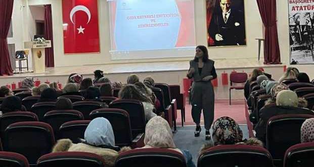 Sağlık İl Müdürlüğünden eğitime katılan Ebe Elvan Erer ise kişisel hijyen gereklilikleri ve sağlık için önemi konusunda bilgilendirme yaptı.