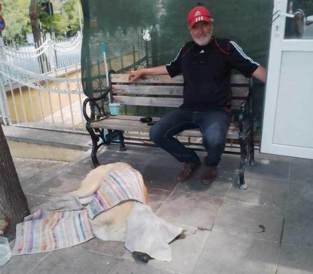 Kemal Zeytinoğlu caddesi başında bulunan taksi durağı önünde gözlenen, üzeri bezlerle örtülü gölgede yatan köpek, müşteriler ve gelip geçenlerin ilgisini çekiyor. Durak çalışanı Fikret Kayhan Alkan, zaman zaman taksi durağına gelen köpeğin sıcak havalarda serinleyebilmesi için üzerini nemli bezlerle örtüyor. Alkan, belinden ve ayaklarından rahatsız olan köpeğin zaman zaman duraklarına geldiğini anlatarak, "Yürümekte zorlandığını gördüğüm bu köpek zaman zaman bizim taksi durağına geliyor. Cana yakınlığı ile ilgi çeken köpeğin bu durumu beni üzüyordu. Sıcak havada rahatsızlık çektiği belli oluyordu. Buraya uzanınca ben de serinleyip rahatlasın diye ıslattığım bezleri, havluları üzerine seriyorum ve rahat bir şekildi yatıyor. Benim elimden gelen bu kadarı. İlerde belki bir hayırseverin ya da veterinerin yardımı olursa çok iyi bir sevap işler. Odunpazarı’ndaki bu sevimli köpek herkesin, özellikle yerli yabancı turistlerin ilgi odağı olmuş durumda" dedi.