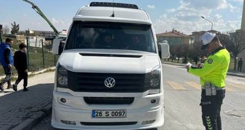 Eskişehir’de polis ekiplerince 54 okul servis aracı ve şoför kontrol edilirken kusurlu bulunan 4 servis ve şoförüne toplam 8 bin 306 TL para cezası kesildi.