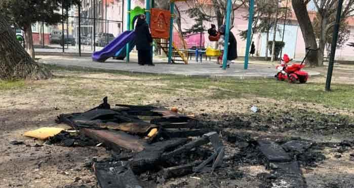 Eskişehir'de bir çocuk parkının ortasında kimliği bilinmeyen şahıslar tarafından yakılmış koltuk hem kötü görüntü oluşturdu hem de mahallelinin tepkisini çekti