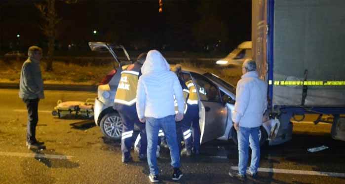 Eskişehir'de sabaha karşı meydana gelen kaza, Eskişehir- Ankara Karayolu Yunus Emre Devlet Hastanesi mevkinde meydana geldi. Edinilen bilgilere göre, Aynı yönde Ankara istikametine doğru seyir halinde olan üç araç birbirine girdi. Mehmet Dedecan'ın idaresindeki 26 AFH 251 plakalı araç sürücüsü hızını alamayıp önündeki aynı yönde seyreden Tarık Yıldız yönetimindeki 06 EBT 483 plakalı otomobile çarptı. Çarpmanın etkisiyle 06 EBT 483 plakalı otomobil önünde seyreden Hüseyin Atılgan'ın idaresinde ki 11 AZ 120 plakalı tırın altına girdi. Yaşanan kaza da 06 EBT 483 plakalı aracın sürücüsü Tarık Yıldız ve yanında yolcu olarak bulunan Emine Özgün Yıldız ağır yaralandı. Yaralılar olay yerine gelen 112 sağlık ekipleri tarafından sıkıştıkları yerden kontrollü bir şekilde çıkarılarak Yunus Emre Devlet Hastanesine kaldırıldı. Polis ekipleri kaza ile ilgili inceleme başlattı.