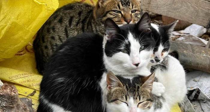 Eskişehir’de, dondurucu ayazdan birbirlerine sarılarak korunmaya çalışan 4 kardeş kedinin görüntüsü iç ısıttı.
