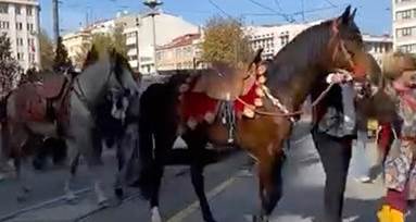 Eskişehir Odunpazarı ilçesinde şehir merkezinde atların gezdirilmesi, cadde üzerinde yaşayanlar ve alışveriş için dışarı çıkan vatandaşların dikkatini çekti. İki Eylül Caddesi boyunca yöresel kıyafetler giymiş kişiler tarafından yürütülen atlar, kısa sürede çevrede merak uyandırdı.