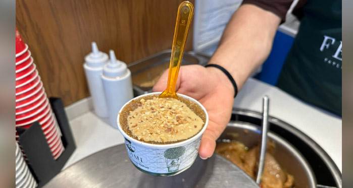 Hamamyolu Caddesi üzerinde dondurmalı irmik helvası satışı yapan Emirhan Dikme, son günlerde hava sıcaklığından dolayı talebin arttığını söyledi. Dondurmalı irmik helvasının hafif bir tatlı olması sebebiyle sıkça tercih edildiğini belirten Dikme, “Tatlının altında dondurma olduğu için yazın vatandaşları serinletiyor ve sıkça rağbet görüyor. Özellikle hafif bir tatlı olması sebebiyle yazın çok iyi bir ürün olarak öne çıkıyor çünkü insanlar sürekli sıvı bir şey tükettiğinde de sıkıntı çekiyor. Tatlının hem şişkinlik yapmaması hem de serinletmesi vatandaşların ilgisini çekiyor. Vatandaşlar sıcak helva sebebiyle temkinli yaklaşıyor ama dondurma olduğu için serinletiyor. Antep fıstıklı, çikolatalı ve sade çeşitleriyle satışa sunulan helvalar 40 liraya satılıyor” dedi.