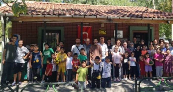 Eskişehir'de Şeker Camii Hocası Ahmet Dinç ve Şeker Mahalle Muhtarı Canan Arı tarafından muhtarlık parkında yaz Kur'an kursu kapanış programı düzenlendi.