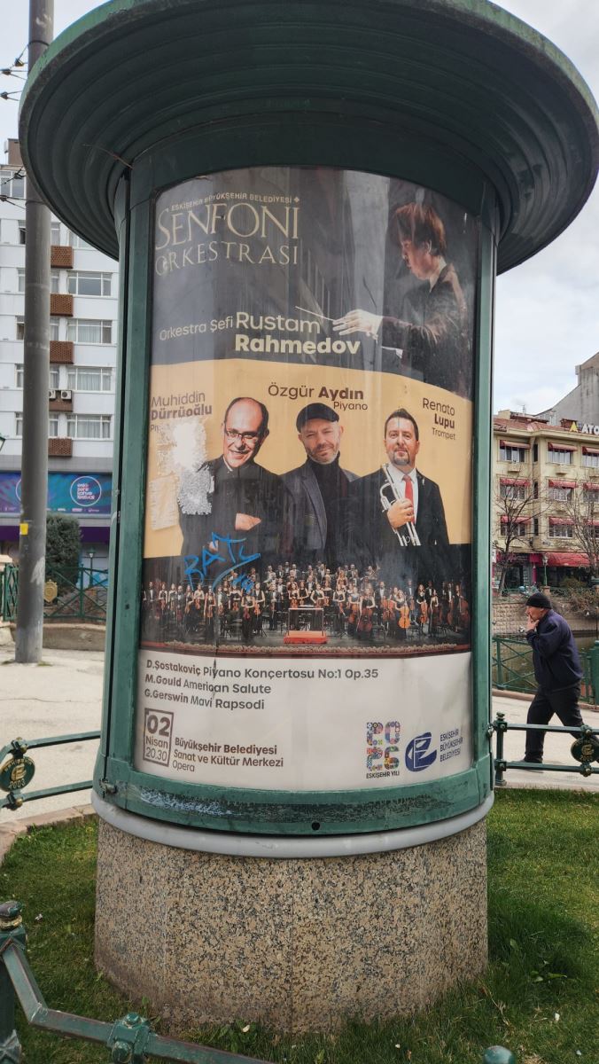 Eskişehir Büyükşehir Belediyesi Senfoni Orkestrası’nın konserine ilişkin afişler, şehrin farklı noktalarında vatandaşlarla buluştu. Kent genelinde dikkat çeken afişler, etkinliğe yönelik ilgiyi artırdı.