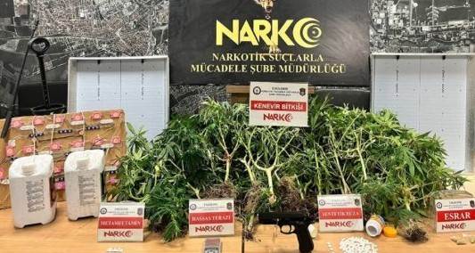 Polis ekiplerince şüpheli şahıslardan toplamda, 205 adet sentetik hap, 154,18 gram metamfetamin, 70 kök kenevir bitkisi, 41,55 gram esrar, 21,71 gram bonzai, 2 adet lsd, 2 adet hassas terazi, 1 adet tabanca ve 15 bin 200 TL sahte para olduğu değerlendirilen para ele geçirildi.