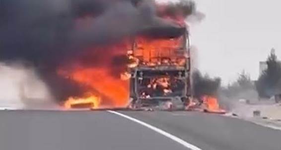 Eskişehir-Ankara kara yolunda seyir halindeki yolcu otobüsü, motor kısmında çıkan yangın sonucu kısa sürede alevlere teslim oldu. İçerisinde 25 yolcu, 2 şoför ve 1 muavinin bulunduğu otobüs, yolcuların hızlı tahliyesi sayesinde faciadan dönüldü.