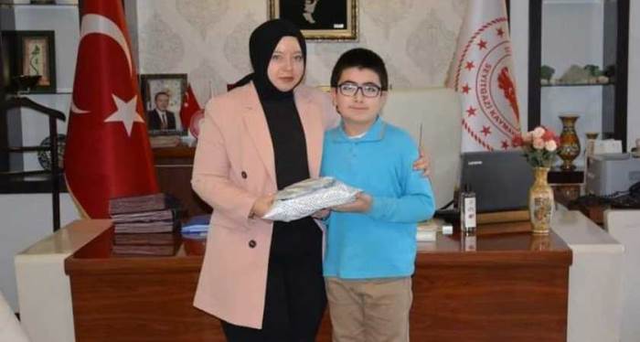 Eskişehir ile genelinde düzenlenen ezan okuma yarışmasına Seyitgazi’den katılıp dereceye giren öğrenciyi İlçe Kaymakamı Yeşim Altın tebrik etti.